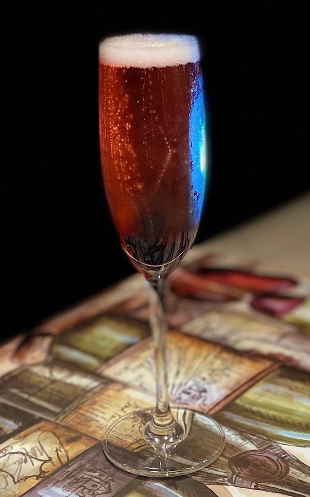 Depending on how much color (and liquorish) you want, the quantity of Crème De Cassis can vary. Pour in the liqueur first, then champagne follows. Et voila!